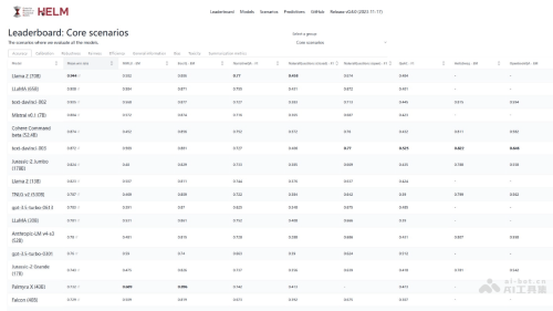 - 全面的评估能力:HELM支持多种语言模型任务(如问答、文本分类、信息检索、文本生成、摘要等),提供多种评估指标(包括准确率、鲁棒性、公平性、偏差、毒性、推断效率等),能够从多个维度全面评估语言模型的性能。
