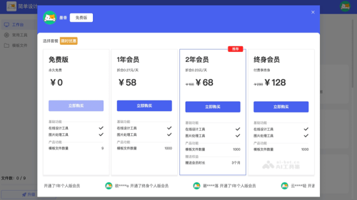 - 终身会员:128元,提供1000个模板文件和所有设计、图片处理工具。